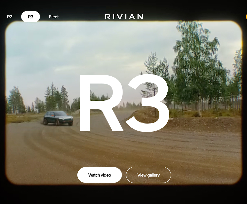 Rivian.com builds everything around the outdoor identity of the brand. Earth-tone palette, R1T and R1S photographed in actual field conditions rather than a studio, clean proprietary typography. The configurator surfaces real-time inventory data from the production pipeline — no “availability subject to confirmation” disclaimers. Core Web Vitals stay consistently in the green, with adaptive lazy loading for gallery sections and a PWA wrapper for mobile.